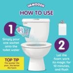Its powerful foam contains bleach to target tough stains, odours, and limescale, leaving your toilet sparkling clean and fresh. Unlike traditional cleaners, Vamoosh’s thick foam clings to the bowl, rising under the rim and staying active for 10 minutes to ensure a thorough clean.
